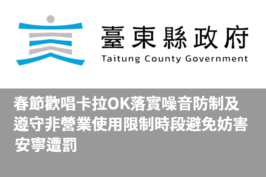 每年農曆春節,民眾常會相約在自家、親友家、餐飲業及餐酒館等營業場所卡拉OK歡唱,如果場所未採取妥適的隔音措施,易發生噪音妨害周遭居民生活環境安寧;根據臺東縣環保局統計113年受理該類噪音陳情案合計378件,占公害陳情案總件數14%,稽查情形包括周界有無卡拉OK歌唱噪音辨別、測量周界噪音是否符合管制標準、勸導改善,宣導非營業或營業項目未登記視聽伴唱業等場所的卡拉OK設備不得使用供人歌唱的管制時段等法規,呼籲相關場所遵守噪音管制法規及落實隔音措施,並建議春節歡唱時,選擇隔音較佳的場所,共同維護環境安寧。