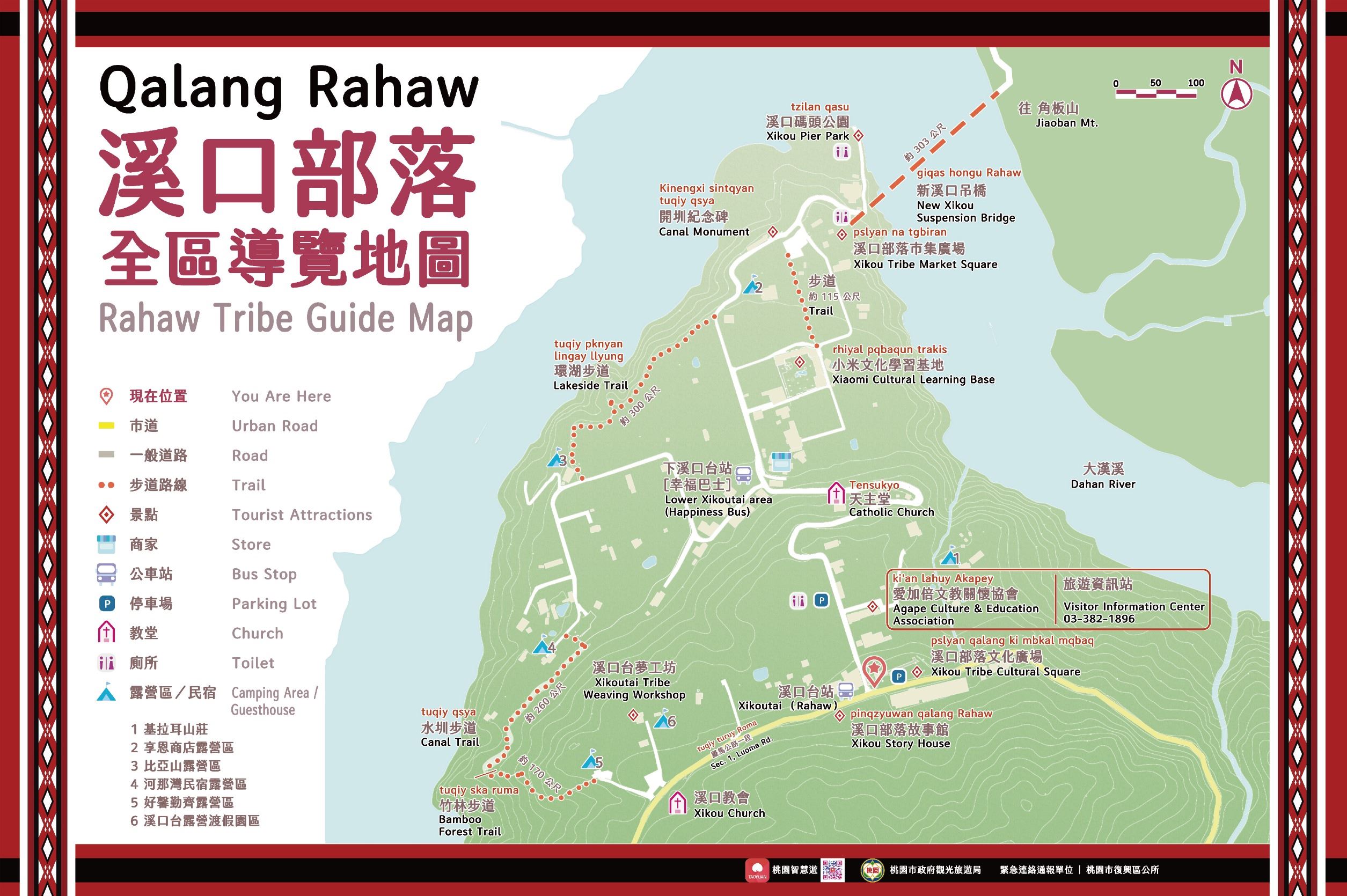 周柏吟局長表示,溪口部落文化廣場入口,設有觀望台、巨型黃藤竹簍以及吹著口簧琴的婦人塑像,可以感受到專屬泰雅族的風情。之後往羅馬公路繼續行走約10分鐘後可抵達竹林步道,穿梭在竹林間後繼續抵達水圳步道,行走在水圳步道間可瞭解上世紀在地的部落利用水圳耕種的農業生活。穿過水圳步道後繼續銜接產業道路,行走約5分鐘左右即可抵達環湖步道,步道沿著水庫岸邊行走,可從林間縫隙觀看水庫湖面。走過環湖步道後往下行走約10分鐘即可到達開圳紀念碑所在,看完紀念碑後斜對面即是溪口部落市集廣場,市集廣場於周末有特色市集經營,可以體驗到原住民傳統美食及表演。逛完市集廣場可選擇踏上新溪口吊橋感受大漢溪旁群山環繞的景致,也可選擇行走於小徑內的秘境步道抵達小米文化基地,基地內不時會舉行體驗泰雅傳統文化的活動。後續沿著道路往上行走約20分鐘即可回到溪口部落文化廣場。另外也可以先到石門水庫遊玩,並在壩頂碼頭或者阿姆坪碼頭搭乘遊艇走水路抵達溪口碼頭公園,抵達公園往上行走約5分鐘即可抵達溪口部落市集廣場,後續行程可先行經秘境步道至小米文化基地,再步行到羅馬公路後行經竹林步道、水圳步道、環湖步道感受林間悠閒氛圍,繼續觀賞完開圳紀念碑後再回碼頭公園搭船回到水庫。溪口部落一日遊的行程體驗就能讓你感受滿滿的泰雅風情!