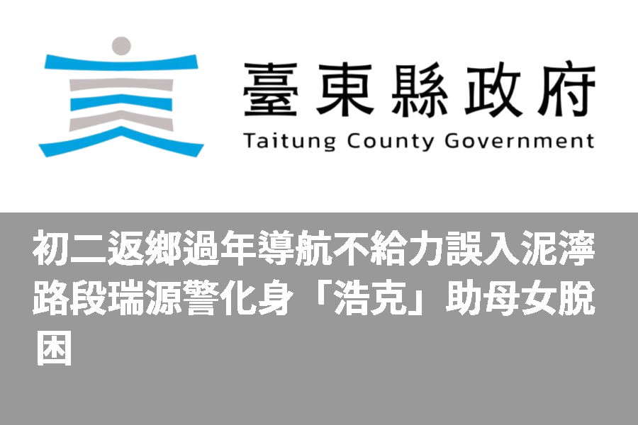 東部新聞台東縣初二返鄉過年導航不給力誤入泥濘路段 瑞源警化身「浩克」助母女脫困