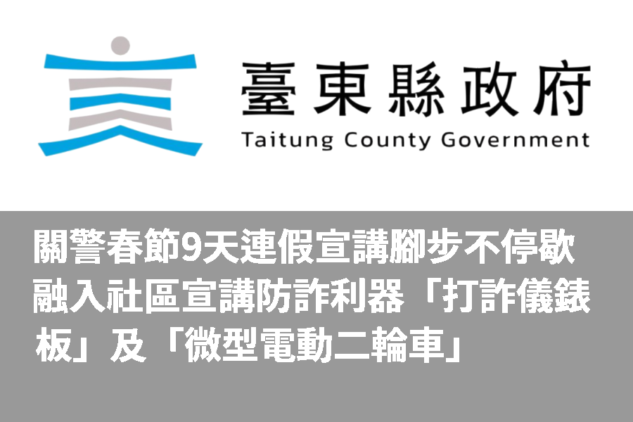 東部新聞台東縣關警春節9天連假宣講腳步不停歇 融入社區宣講防詐利器「打詐儀錶板」及「微型電動二輪車」