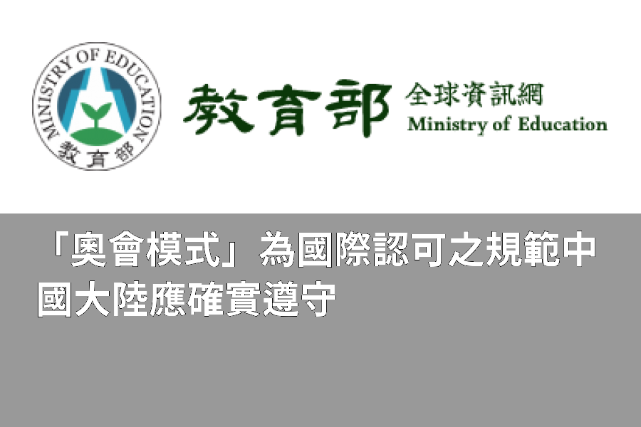 有關中國大陸國台辦發言人朱鳳蓮於今(12)日稱,「奧會模式」是體育領域處理涉臺問題的基本準則,不涉及新聞媒體等其他領域或賽事之外區域。教育部體育署說明如下: