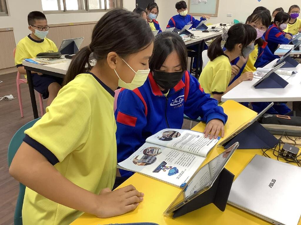 虎林國中謝大材校長表示,運用平板上課能有效提升學生專注度和興趣,學生在忙著完成任務的同時,也能嫻熟地使用科技資源幫助自己學習,更完善科技教育環境,讓雙語教學的觸角向外延伸,透過小平板也能遨遊大世界。