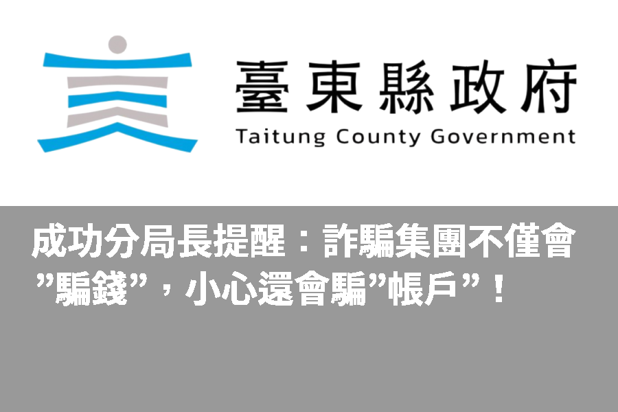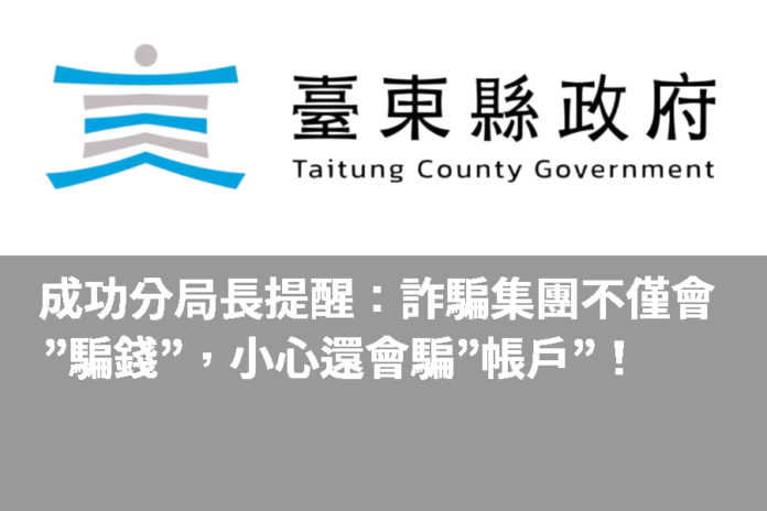 東部新聞台東縣成功分局長提醒:詐騙集團不僅會”騙錢”,小心還會騙”帳戶”!