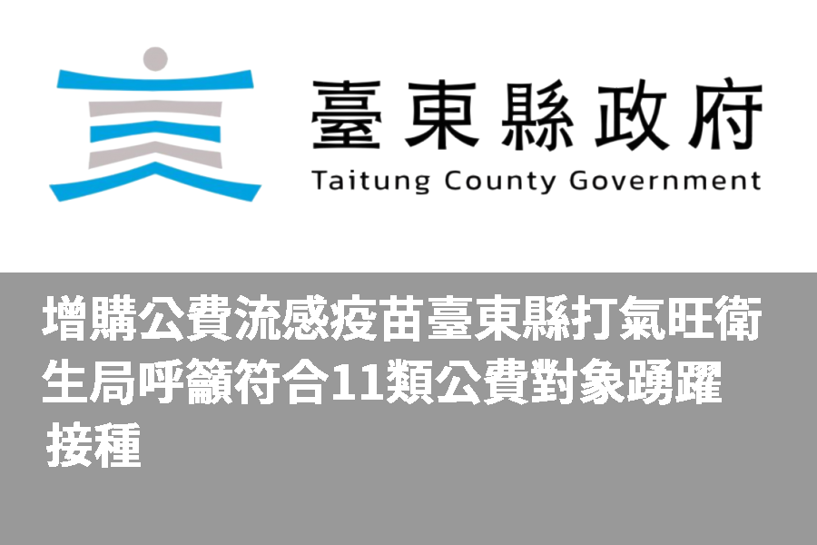 增購公費流感疫苗臺東縣打氣旺 衛生局呼籲符合11類公費對象踴躍接種
