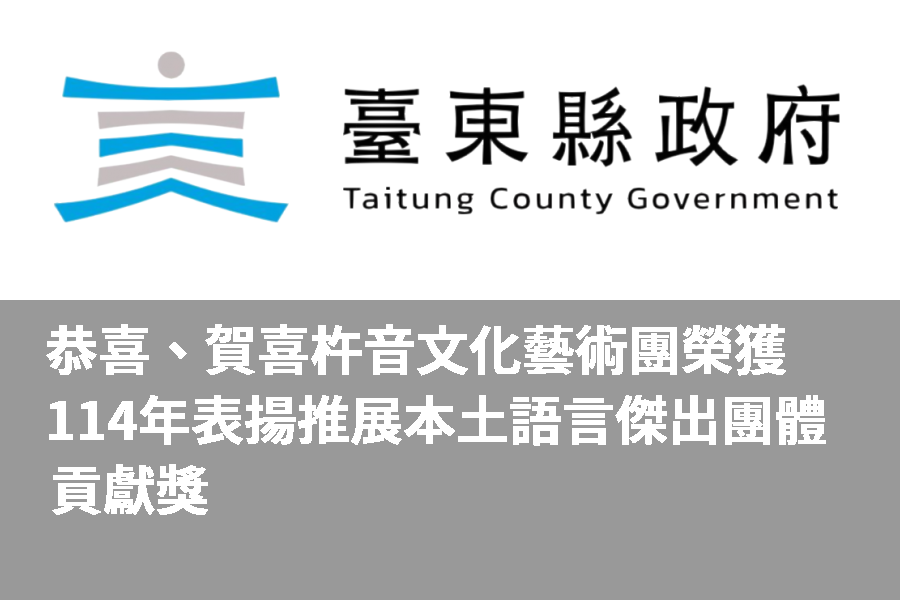 恭喜、賀喜杵音文化藝術團榮獲114年表揚推展本土語言傑出團體貢獻獎