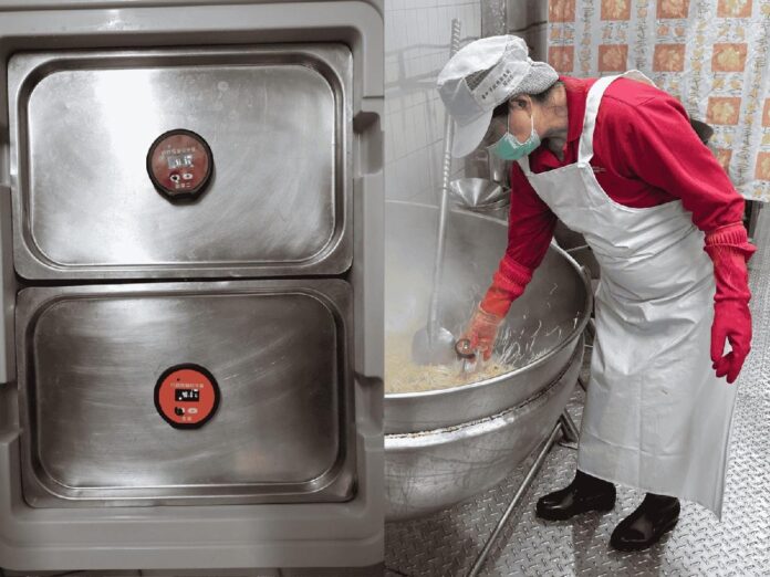 國教署說明,該系統以創新設計、智慧開發物聯網溫度感測器與即時數據傳輸和管理系統,鏈結中央廚房供餐作業流程。學校午餐每道菜在起鍋前皆使用起鍋溫感器量測食物中心溫度(超過70℃),確保達到衛福部食安標準溫度,再進行後續的配膳;配膳後,再透過運送溫感器持續量測與紀錄餐盒內溫度,直到將熟食配送到受供餐學校為止。開學後寒流仍一波接著一波,能確保熱食送達顯得更加重要。