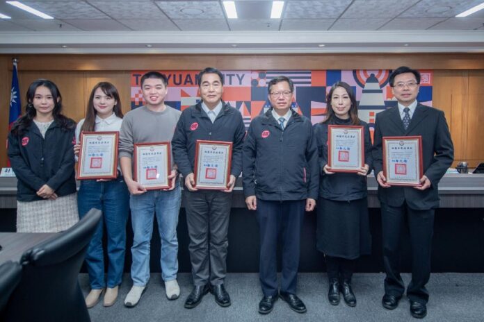 桃園市長鄭文燦今(21)日上午主持市政會議,表揚市府「111年創新提案」獲獎局處時表示,為鼓勵公務同仁創新,提升施政及服務品質,今(111)年度創新提案共徵得58件提案,經初審及複審會議後,選出環保局「後湖逐浪天梯計畫」、資科局「紅利桃子」、水務局「下水道管理收費一把罩」、青年局「Youth Dream Life-桃園創新『校園雲社團』永續智慧城」、水務局「線上估驗、快速方便」等5名創新獎及8名點子獎,共計13件獲獎。