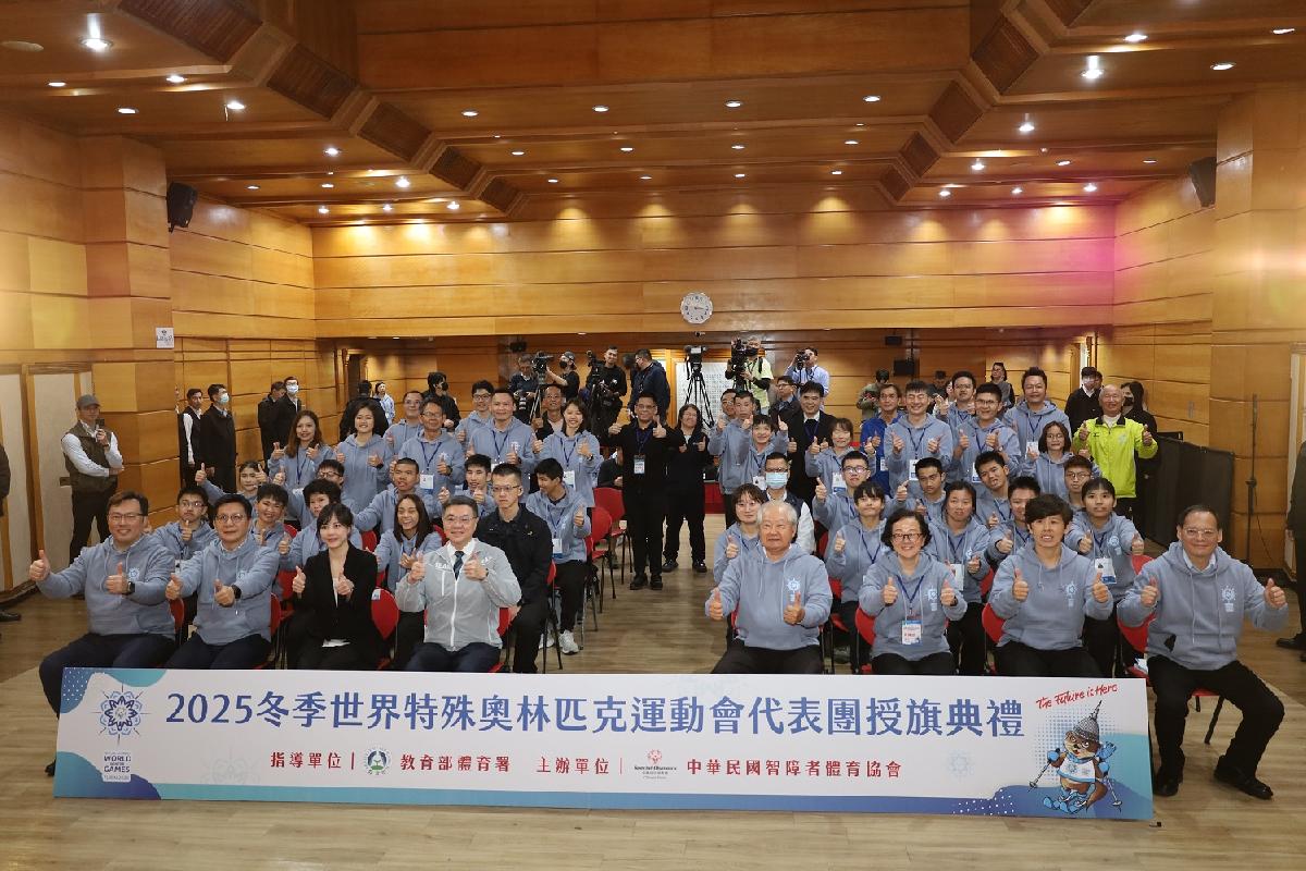 2025年冬季世界特殊奧林匹克運動會將於本(3)月8日至15日舉辦,我國代表團將於3月6日啟程前往義大利杜林參賽。今(5)日於教育部體育署舉行授旗典禮,行政院卓榮泰院長親臨現場,為選手加油打氣,鼓勵他們勇敢迎接挑戰,發揮最佳實力。