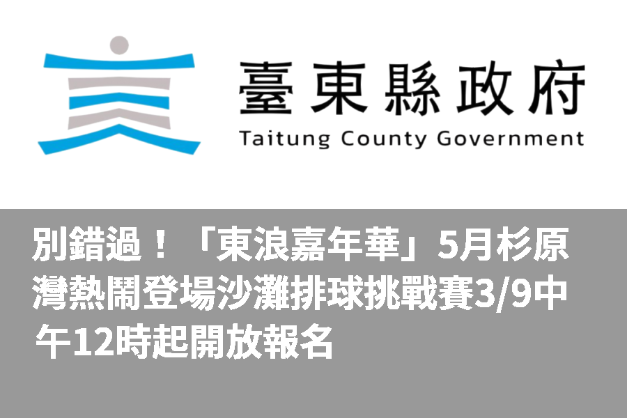 別錯過! 「東浪嘉年華」5月杉原灣熱鬧登場 沙灘排球挑戰賽3/9中午12時起開放報名