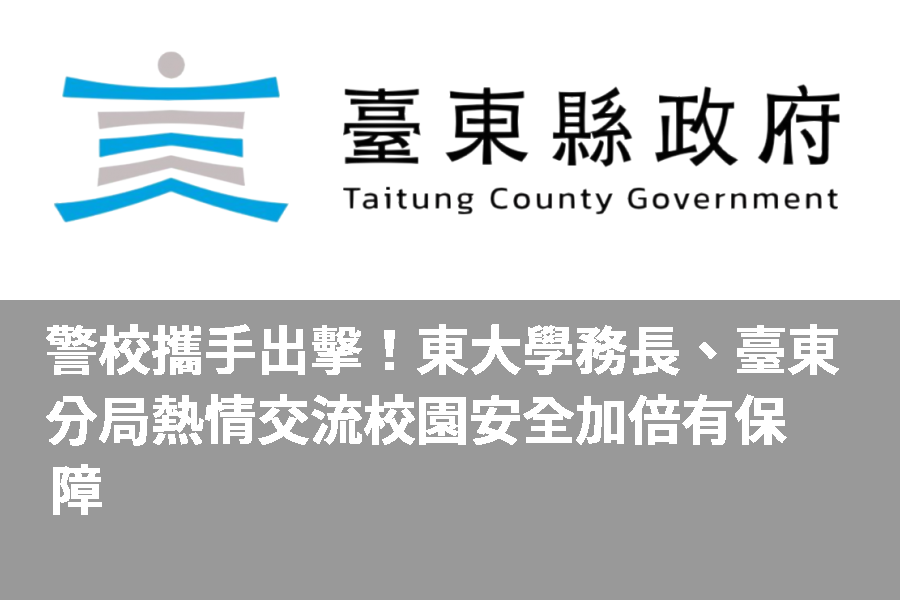 臺東大學學務長黃雅淳昨(06)日親赴臺東警察分局拜訪,與分局長陳宏平進行熱烈交流、相談甚歡。學務長對於警方長期對校園安全的支持與協助表達誠摯感謝,並期望未來能持續保持良好互動關係。臺東分局表示,將全力配合學校各項安全措施,共同為學生打造安心學習環境,雙方就校園周邊巡邏以及緊急事件處理等多項議題進行深入討論。