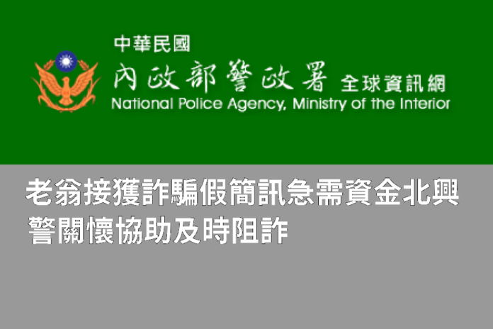 老翁接獲詐騙假簡訊急需資金 北興警關懷協助及時阻詐