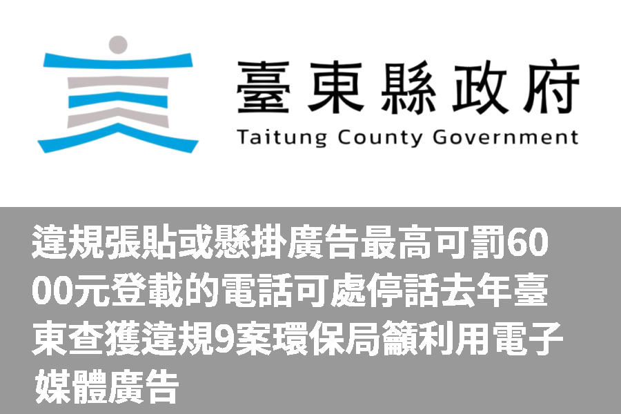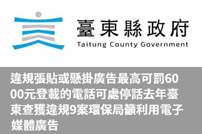 違規張貼或懸掛廣告最高可罰6000元 登載的電話可處停話 去年臺東查獲違規9案 環保局籲利用電子媒體廣告