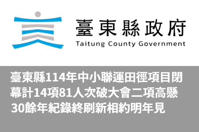 臺東縣114年中小聯運田徑項目閉幕 計14項81人次破大會 二項高懸30餘年紀錄終刷新 相約明年見