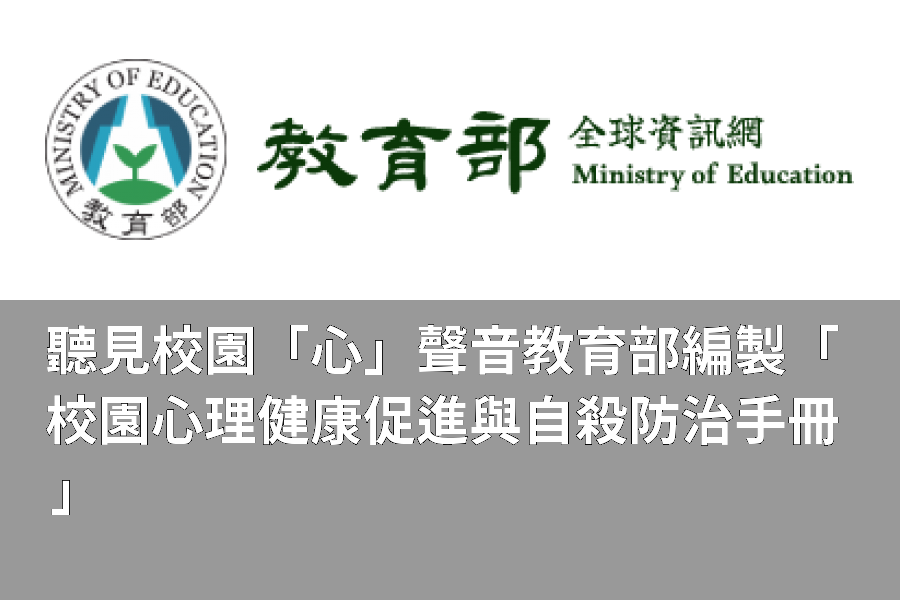 「校園心理健康促進與自殺防治手冊」與懶人包、摺頁等宣導品刊載於本部學生事務及特殊教育司網站,歡迎下載使用並轉發,連結:https://depart.moe.edu.tw/ED2800/News_Content.aspx?n=183CC8C560AF1DA9&sms=B4066D3925B9C8C3&s=5E467A7699005F98;「聽見校園心聲音」專頁連結:https://reurl.cc/yD3zrD。