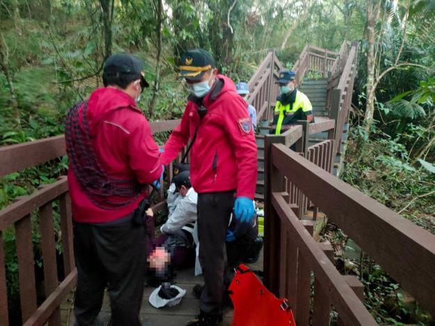 經查住在新竹市76歲林姓老嫗與丈夫於111年12月19日下午前往南庄鄉蓬萊溪護魚步道遊玩,下階梯時不慎踩空跌倒,民眾發現報警處理,積極協助脫困,老嫗家屬非常感謝員警積極協助脫困,一再向員警道謝。
