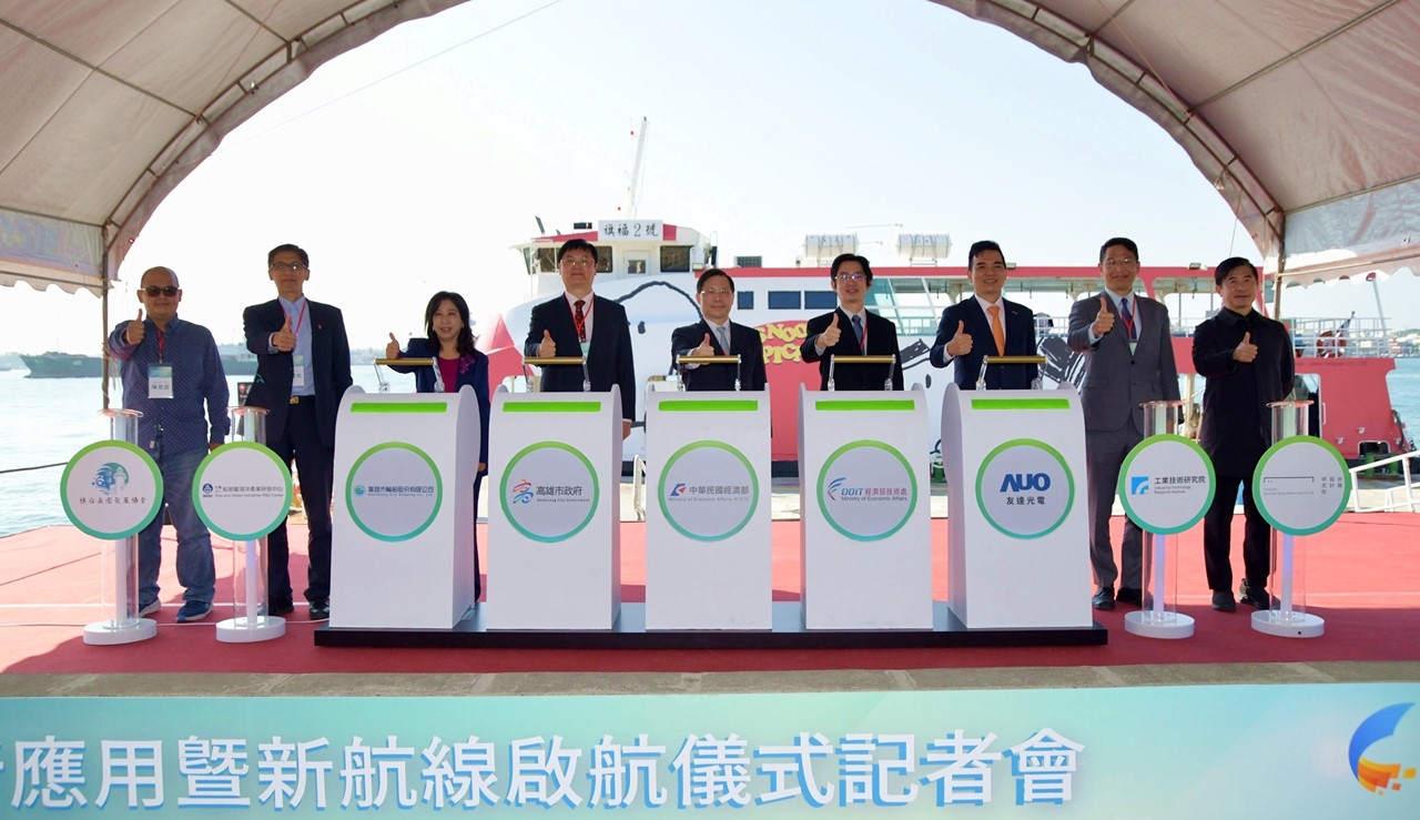 今(22)經濟部與高輪公司在棧貳庫碼頭舉行智慧窗屏創新應用成果發表暨串聯鼓山、旗津及棧貳庫的「鼓津棧」新航線啟用典禮,經濟部次長林全能、高雄市副市長羅達生、高輪公司董事長黃淑美、友達總經理柯富仁、工研院電光所副所長李正中、設研院長張基義、船舶中心執行長周顯光、旗后商圈理事長陳昱宏等貴賓均出席見證,共同啟動新航線並搭乘體驗。