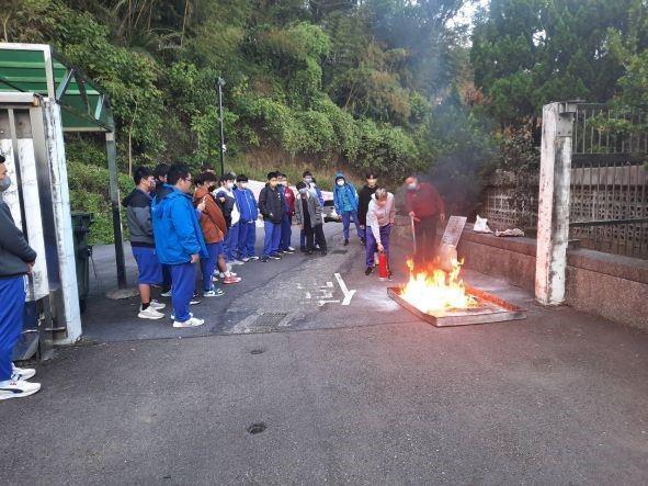 (三)滅火器操作:滅火器可說是操作簡單且隨手可得的滅火器具,但多數人面臨災害發生的同時,因為緊張而忘記滅火器的正確操作要領,而延誤了火災初期的救災時間,現場全校師生踴躍學習及實際操作。