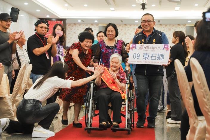 嘉義縣社會局為了讓模範母親閃亮登場,用心安排星光紅毯走秀,讓每位母親在眾人的掌聲與祝福中走入會場。