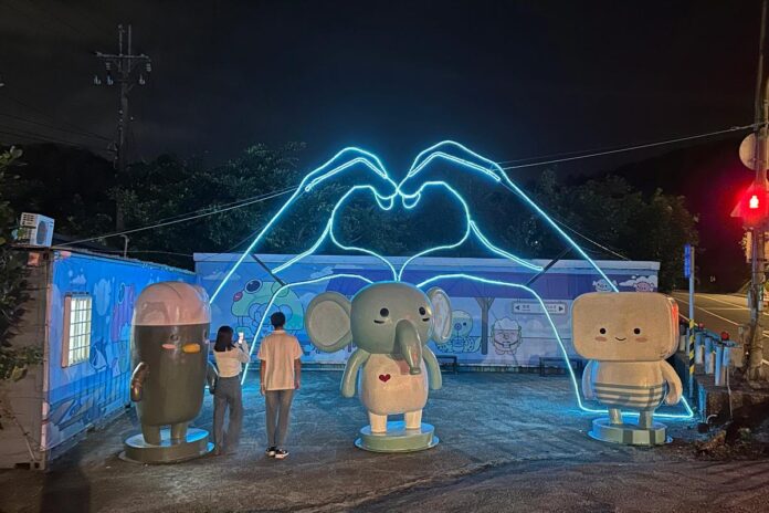 今年燈光設計以「浪漫」與「夏夜」為核心概念,從八斗子站出發,沿線依序設有「夏夜螢火」、「鯨歌」、「蒲公英的約定」等燈區,螢火蟲、鯨魚、蝴蝶與蒲公英交織出流光溢彩的光影世界。穿過光隧道後,可見壯觀的燈浪輕語燈廊隧道,妝點得宛如銀河流瀉,還有玫瑰花海與情侶霓虹燈飾低語呢喃,營造最動人的浪漫氣氛。兩端月台也不容錯過,八斗子月台遠眺海天一色,深澳月台則設有高達5米的「愛之手」造型霓虹燈,為夜騎最熱門打卡點。