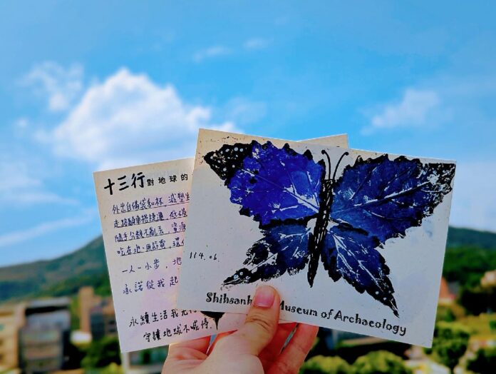 「十三綠時尚」假日手作體驗課程推出全新主題「怪獸世界:蝴蝶效應行動」,讓孩子化身「蝴蝶效應行動者」,拯救怪獸世界的歡樂之樹!運用天然葉子沾取繽紛的壓克力顏料,透過創意壓印技法,製作獨一無二的蝴蝶明信片。每隻蝴蝶的輪廓都巧妙融入八里地圖元素,讓作品更添在地特色與文化連結。完成後,還能在明信片背面許下「對地球的承諾」,例如減少塑膠袋使用或攜帶環保餐具,用實際行動展現蝴蝶效應的力量,讓小小改變成為大大的影響!