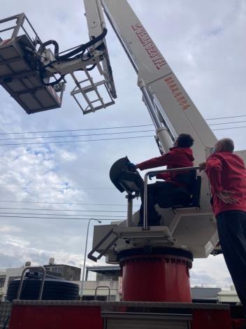 頭屋分隊,為增進同仁對消防雲梯車各項操作及限制之熟悉度,於12月29日執行「消防雲梯車操作訓練」,由分隊長帶領,進行操作訓練,使同仁模擬救災現場狀況並熟悉其操作。