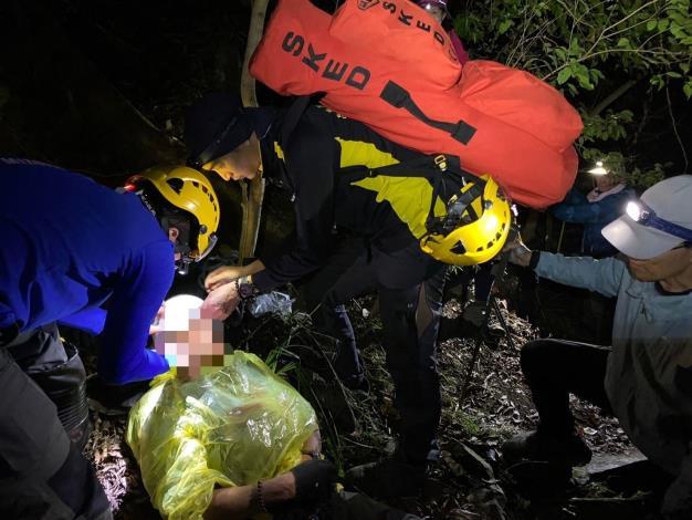 泰安消防隊於12月29日(星期四)15時28分接獲指揮中心通報,登山客攀登虎山在下山時失足跌落山谷造成左手腕腫脹、左眼腫脹及左腳疑似骨折,值班人員接報後,立即派遣救護車1輛、勤務車3輛、救援人員10名馳援,後續於17時5分在救援樁號7號樁附近山谷接觸患者,救援人員給予骨折固定、SKED搬運下山,抵達登山口將患者送醫,民眾亦感謝消防隊人員辛苦付出協助。