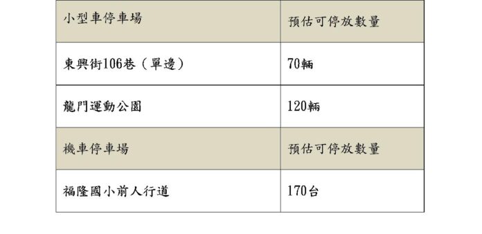 交通局表示,今年度貢寮海洋音樂祭未提供接駁車,會場周邊台2線、福隆街及龍門街於活動期間實施路邊禁止臨時停車,並規劃龍門運動公園及東興街106巷單側等小型車停車地點及福隆國小前方人行道供機車停放,請自行駕車的遊客依導引牌面指示停放車輛,切勿違規停車。