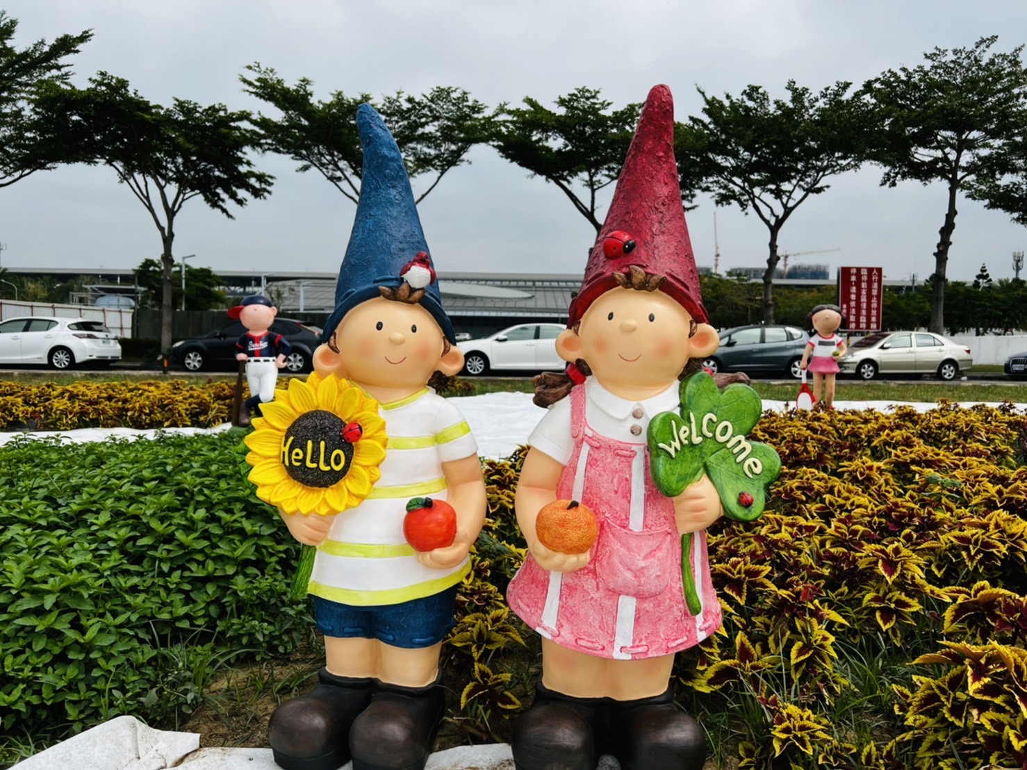 尤其高鐵特定區及大區道南351線,工務局以3萬4千多株紫花、黃花馬櫻丹、紅花玉芙蓉、金露花等,輔以8,700株百日花、孔雀草、雞冠花等當季花種,呈現萬紫千紅繽紛色彩;尤其在高鐵大道三角分隔島中,佇立多樣立體人偶,有的手持Hello、Welcome表達歡迎貴客的到來,十分卡哇伊喲!若從台86線大潭匝道下接大區道南351線,轉高鐵大道前往高鐵站前廣場,沿路可以飽灠草花色彩的變換。