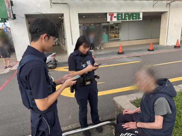 苗栗縣警察局頭份分局頭份派出所警員鄧宇涵、黃弘與實習生洪仁健於114年7月30日16-18時許擔服巡邏勤務,接獲民眾報案稱:有一名疑似失智老翁於頭份市信義路128號附近徘迴,神情相當無助,立即上前關心。