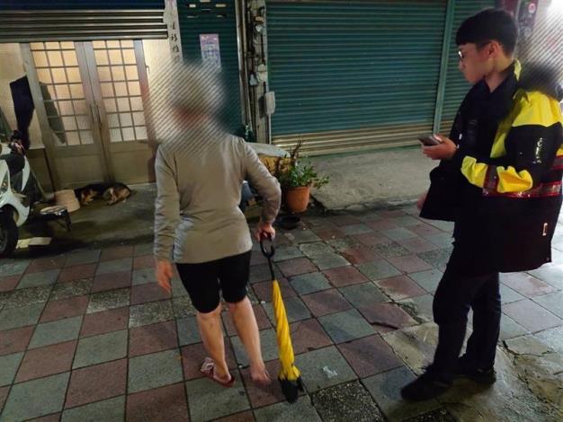 經警方到場查看,見老嫗面露疲態擔心渠身體不適,先行查證並確認身分後,因晚間雨勢滂沱,為避免產生危害,故由警方協助載返家休息,家屬對警方熱心協助表達萬分感謝。