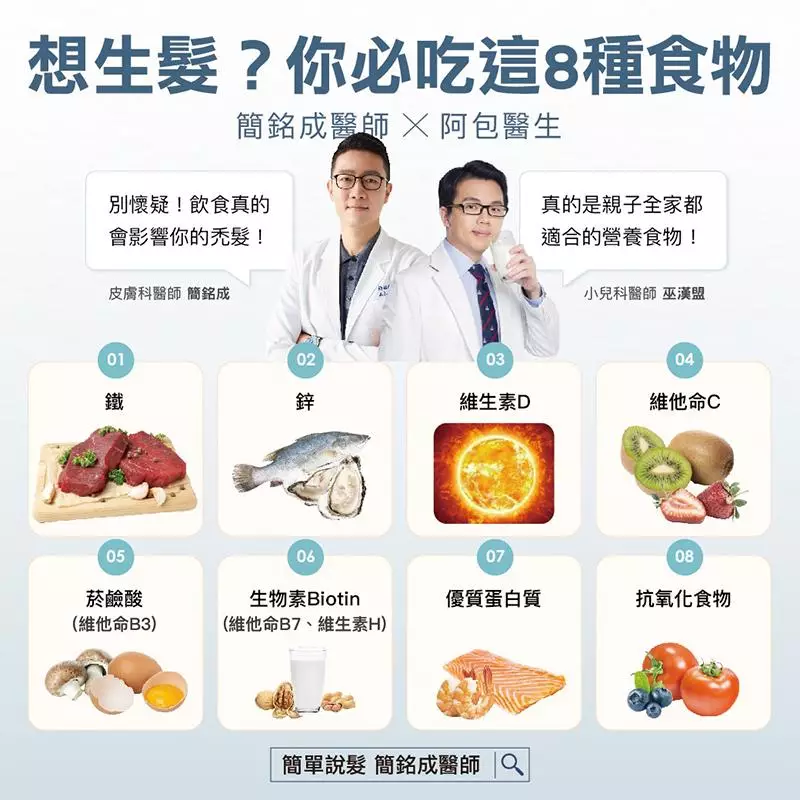 當然,若已出現明顯雄性禿,藥物如minoxidil或finasteride仍是主要治療藥物。但上述營養素與飲食的調整,可做為「輔助治療」,提升毛囊環境、降低發炎,甚至延緩病程。