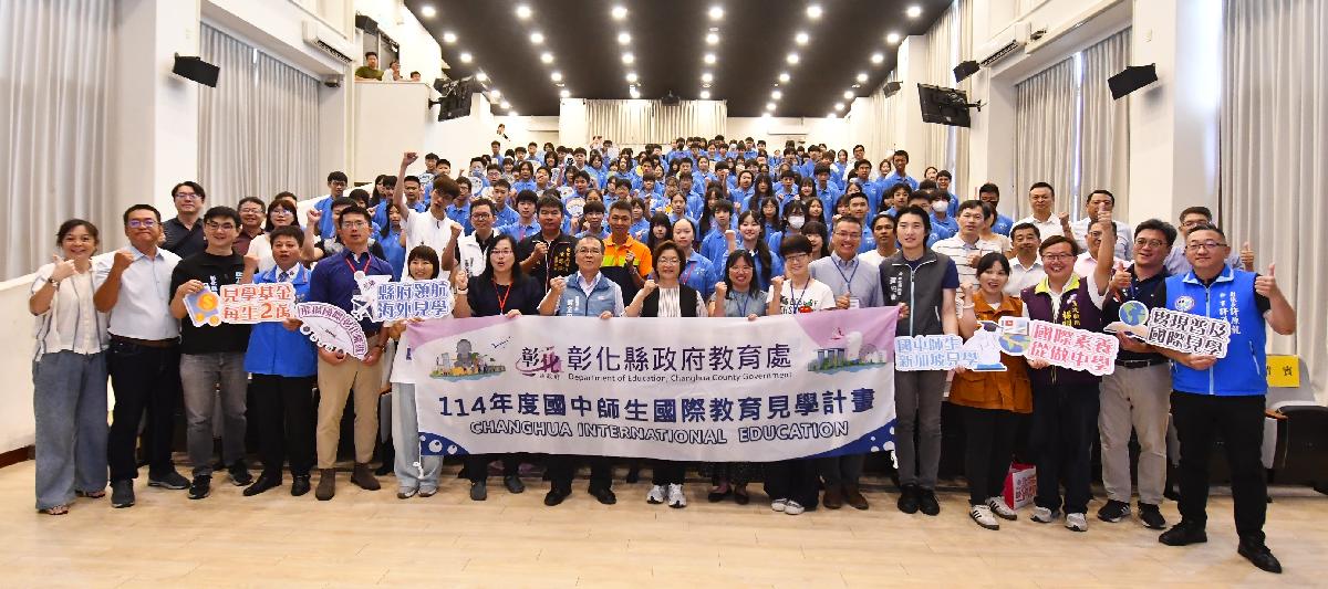 彰化縣政府今(12)日上午在彰化藝術高中展翼館舉辦首屆「國中師生國際教育見學授旗典禮」,由縣長王惠美授旗,祝福即將啟程前往新加坡中華中學的136位國中九年級學生及8位隨隊教師,展開一場為時多日的跨國學習之旅。王縣長表示,「讀萬卷書,不如行萬里路」,即將前往新加坡的優秀學子都是校內佼佼者,是彰化的驕傲,也是推動國民外交的種子。期許學生發揮所長、敞開心胸、用心學習,將所見所聞帶回校園、回饋社會,成為推動國際教育的關鍵力量。