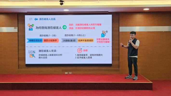 統計114年1至7月,警察局執行「潛在被害人查找計畫」共計380件,已成功勸阻181人報案即時止損,攔阻金額2,327萬餘元,報案率達47.63%,但仍有超過五成之民眾不認為遭詐騙或不願向警察報案。為此,苗栗縣警察局結合縣府心理健康中心及社團法人苗栗縣生命線協會,建立跨局處、公私協力合作機制,共同守護縣民安全,於查訪民眾時發放宣導單張,提供多元諮詢管道,以提高報案率及給予關懷。警察局辦理詐騙手法分析課程,邀請心理諮商師與協談老師參加,提升防詐知能。心理健康中心與生命線協會在與民眾接洽、諮商過程中,運用專業敏感度及防詐知識,協助辨識潛在詐騙受害者,及時提供情緒支持與關懷,讓民眾願意敞開心胸接受協助或報案。