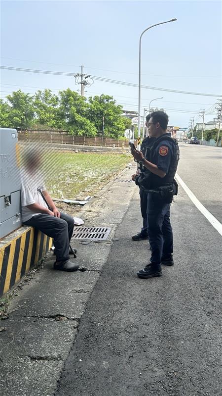 苗栗縣警察局頭份分局尖山派出所警員莊蟤聞、魏畯豐於114年8月8日15時許擔服巡邏勤務,接獲民眾報案稱:有一名迷途傅姓老翁(43年次)於頭份市興隆路461號前徘迴,神情相當無助,立即前往查看。
