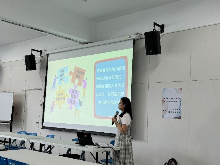 另外,縣府與福星國小特教中心在此次研習中,針對特殊教育相關專業團隊注意事項、特殊教育輔具申請、情緒行為問題專業支援團隊進行業務說明及介紹,幫助與會的老師及專業團隊治療師對相關資源有更多的了解,以利在未來協助學生時能有效的資源整合與共享,提供給學校、學生適切的策略與支持。教育處長葉芯慧表示感謝普特教師的用心教學,以及本縣特殊教育相關專業團隊的治療師長期的專業協助,提供學生於校園學習環境或課程建議,並協助普特老師擬定教學目標、IEP學習領域,減少學生學習限制。