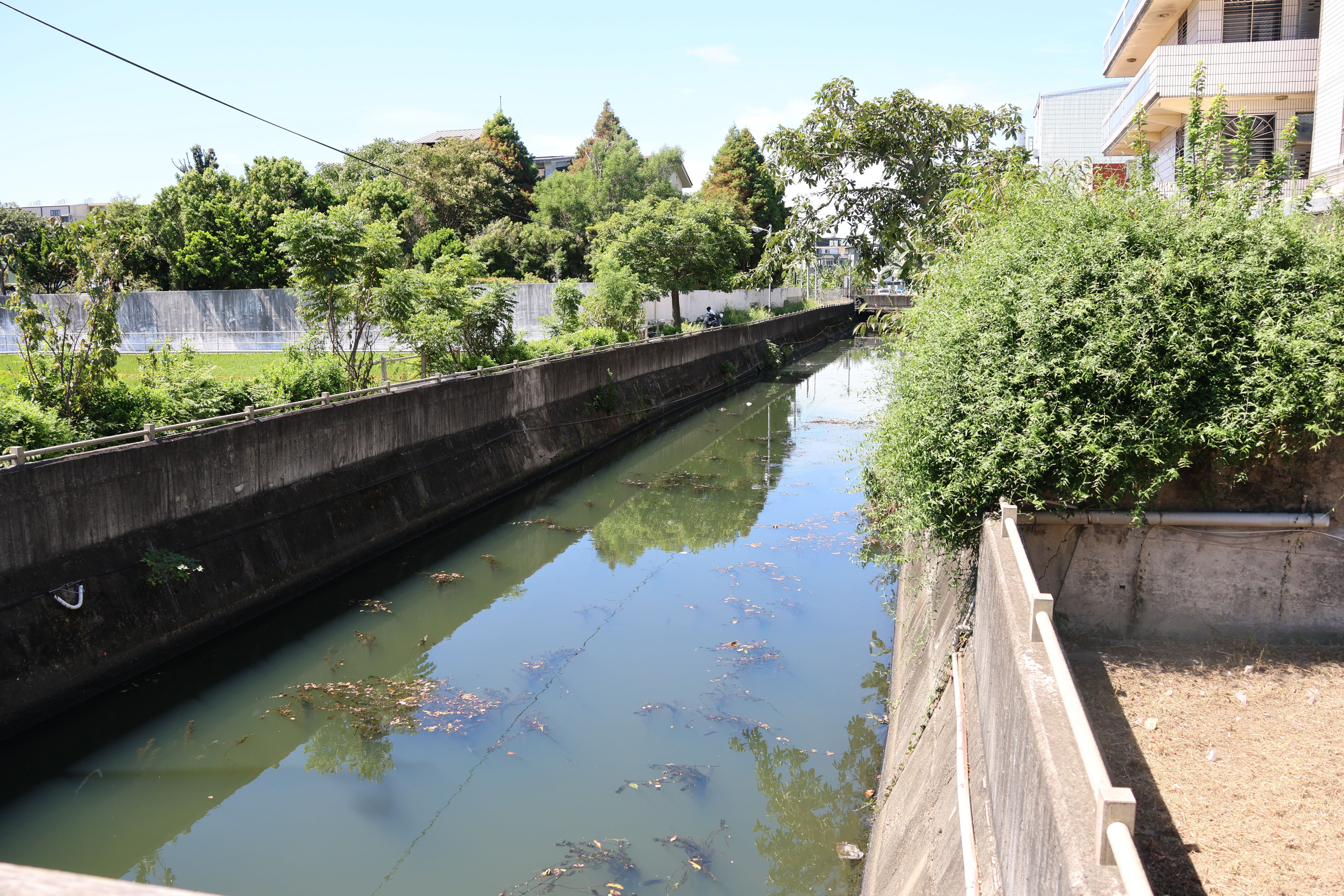 射流溝雖位於公共污水下水道系統接管區域範圍內,但該區域因房屋較屬老舊且住戶排水多為雨污混流,部分房屋仍未納入公共污水下水道系統,生活廢污水持續排入排至灌溉溝渠內,縣府執行水質採樣測試,換算河川水質污染指數 RPI 值介於5~5.75 間,屬於中度污染。