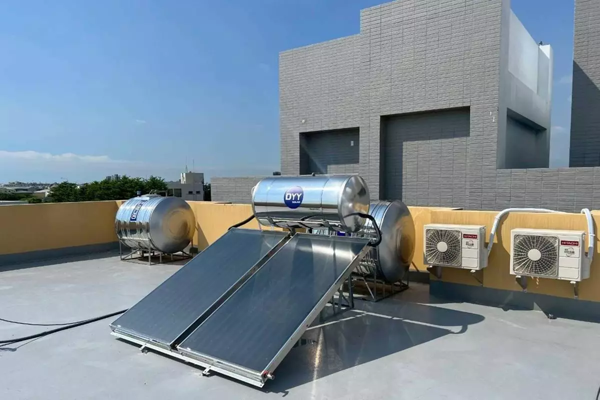 在朋友推薦下,張先生聯繫賀埼有限公司。技術人員現場勘查後,建議他們更換為怡心牌太陽能熱水器搭配電能備援裝置,以屋頂空間安裝4片集熱板為主體,滿足全家人24小時穩定熱水供應需求。