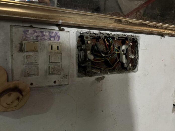 西鶯里長蘇炳輝表示,該家戶男主人長年臥病在床,太太為越南新住民,來台十多年,育有一名年幼子女。他在家訪時發現許多電燈不亮,插座及燈架老舊不堪,尤其線路凌亂,用電環境非常不安全,因此請水電簡易修繕班幫忙。