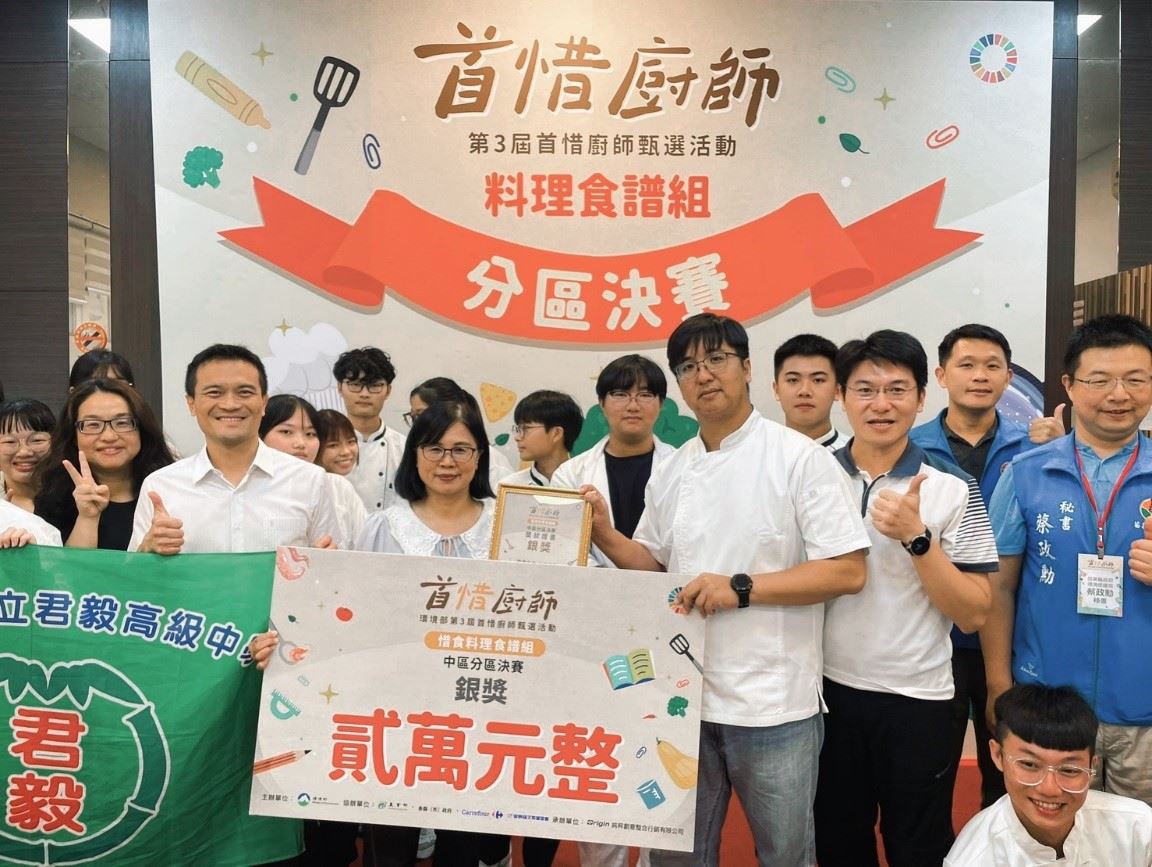 「料理食譜組」由君毅中學進修部主任暨餐飲科教師吳森澤代表出賽,以「家滋‧豚食」與「金絲什錦捲」兩道料理脫穎而出。料理以五花肉為主角,結合台灣家常風味與越式料理靈感,不僅重現媽媽與阿嬤灶腳的溫暖記憶,更融入異國元素,強調「吃得完整」與減少廚餘的惜食精神,展現尊重食材與多元文化的美學。吳老師成功自中部七縣市中脫穎而出,榮獲中區銀獎,將於9月27日前進台南崑山科技大學角逐全國最高榮譽「惜食首惜傳說獎」。
