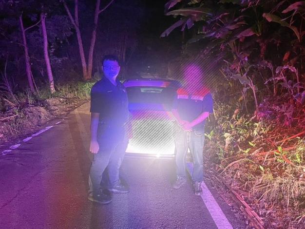 苗栗縣警察局頭份分局南庄分駐所巡佐廖國正、警員楊皙鈞、賴致寧於114年8月23日17時許接獲報案稱,周男(46年次)駕駛自小客車至南庄鄉鹿場山區,因不熟產業道路路況導致車輛左前輪陷入山溝無法動彈。