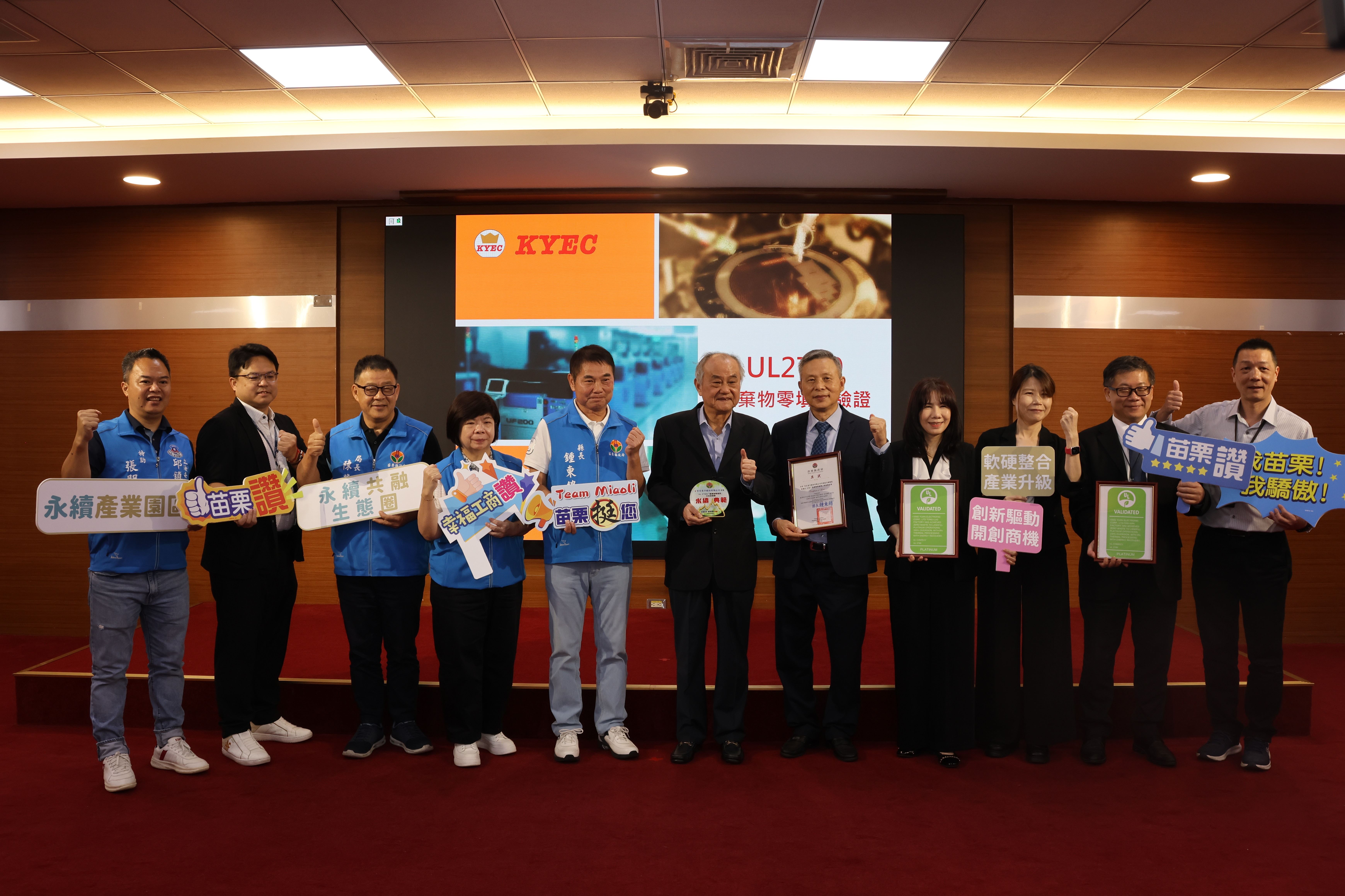 鍾縣長強調,京元電的努力不僅提升企業競爭力,更為本縣產業鏈立下典範,不但是企業的榮耀,也是苗栗的榮耀。縣府未來將持續推動綠色製造、循環經濟,並鼓勵更多企業投入淨零行動,共同打造苗栗成為 永續產業示範基地。