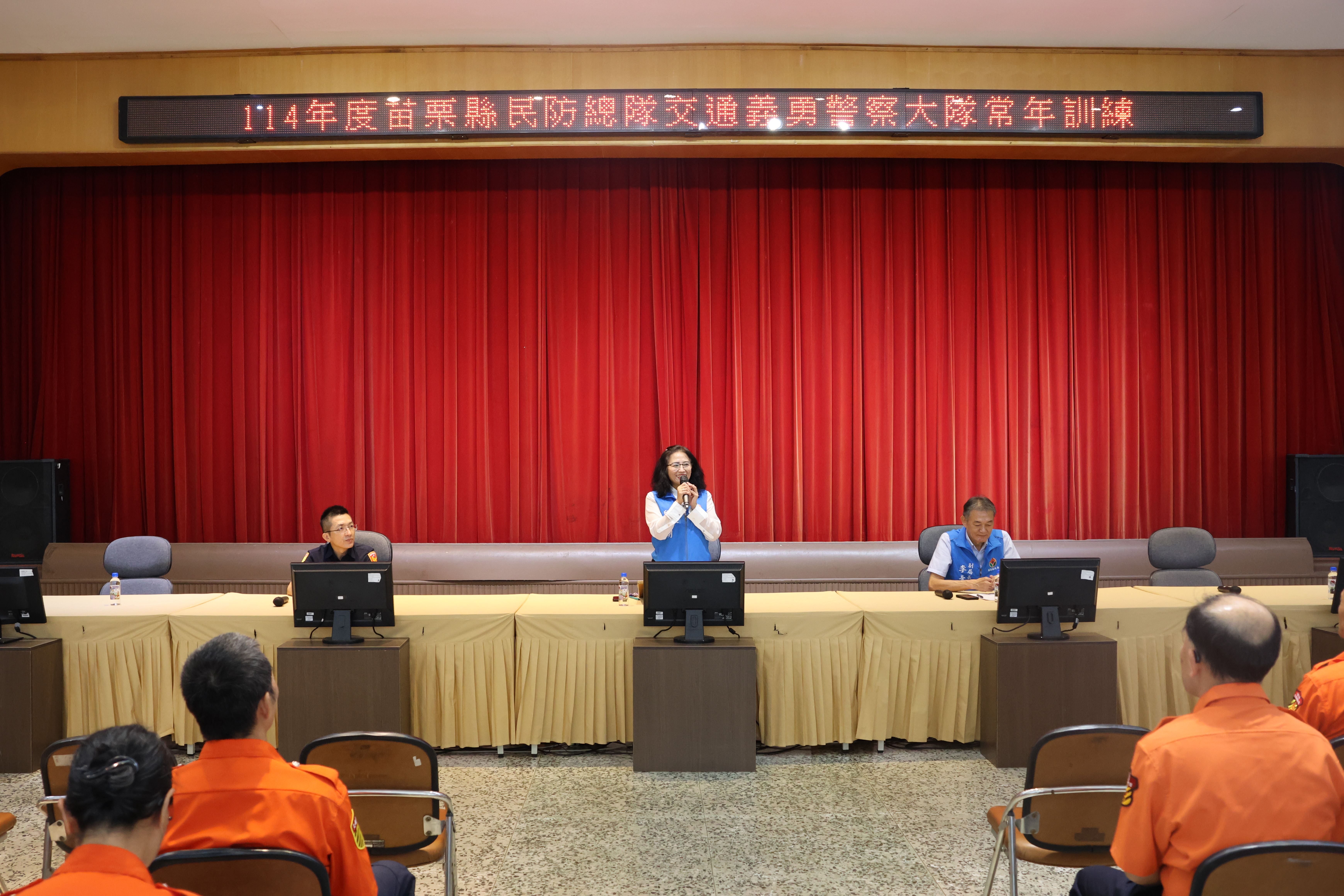 苗栗縣114年交通義勇警察常年(幹部)訓練8月30日於苗栗縣警察局舉辦,苗栗縣副縣長邱俐俐頒獎表揚績優及榮退人員,感謝他們奉獻寶貴時間為維護交通順暢努力,並提醒各用路人「車輛慢看停,行人安全行」,期許大家不僅遵守交通規則外,也提高道安意識為苗栗創造更安全幸福的生活。