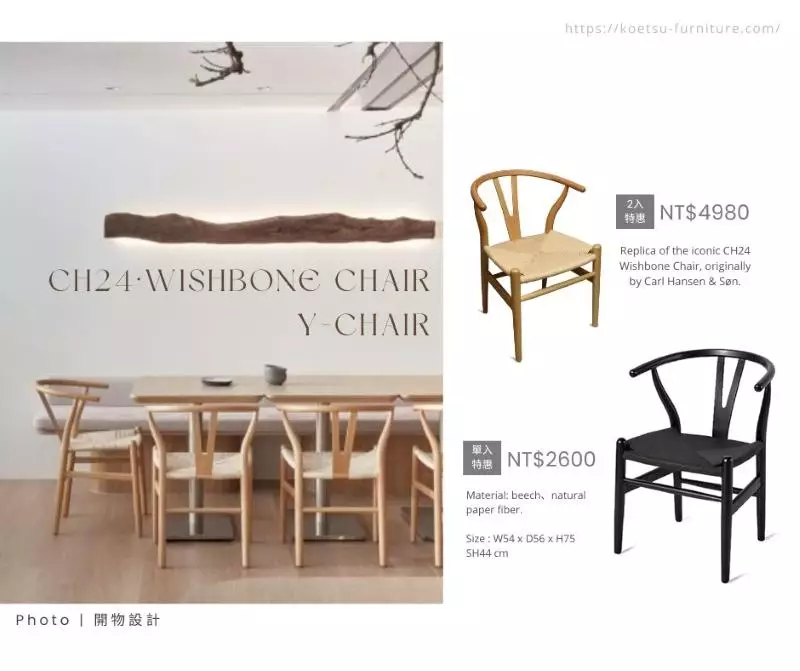 如果喜歡北歐簡約風格,也可以選擇Y-CHAIR,以經典北歐設計聞名,簡約優雅的線條與舒適座感,無論單獨使用或與老宅風混搭,都能提升空間質感,讓居家氛圍更有層次感。搭配餐桌或作為單椅使用,讓每個角落散發自然舒適的氣息。