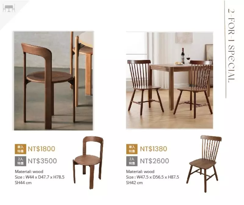 光悅制作推出的經典休閒餐椅 2 入組優惠活動,讓你一次帶回兩張椅子,打造統一又有層次的用餐空間,把舒適與美感一次帶回家。