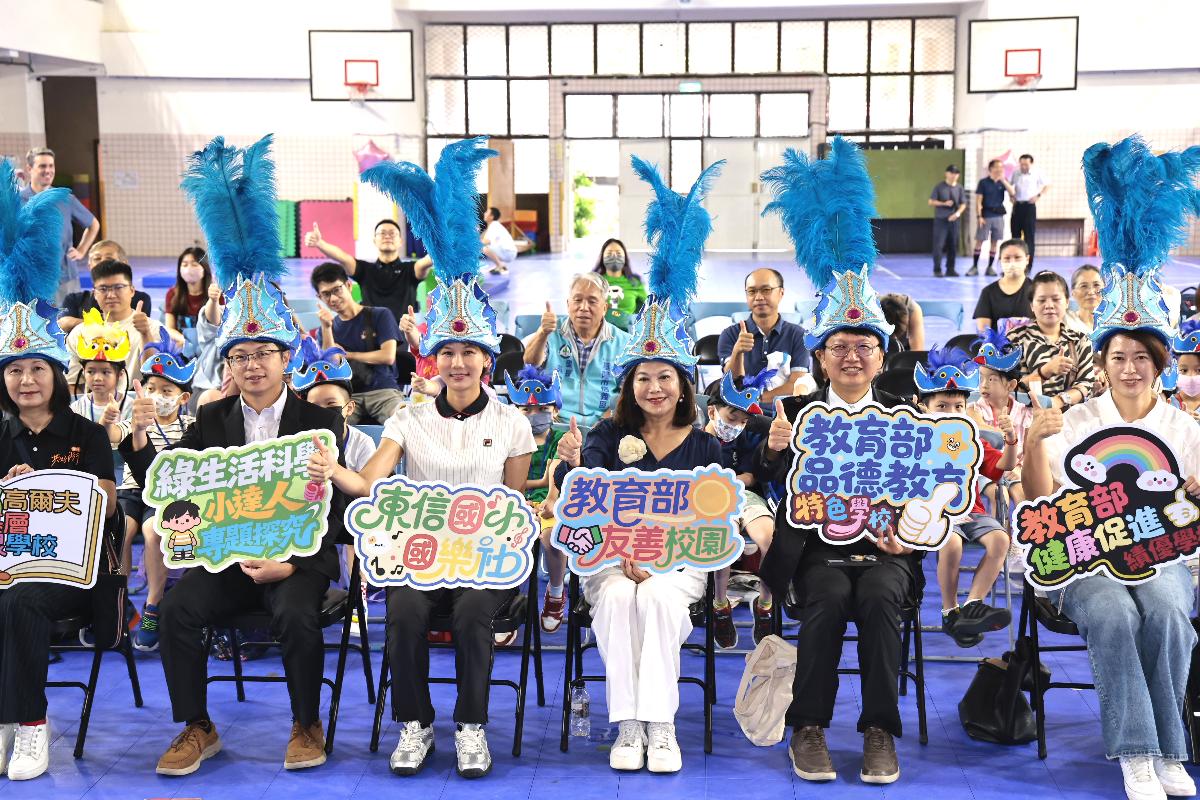 迎接114學年度開學日,邱佩琳副市長今(1)日一早趕到東信國小,與教育處副處長楊永芬、工務處簡翊哲處長、警察局長林信雄以及校長曾恕華一同在校門口迎接小一新生,並為每一位新生戴上校鳥——台灣藍鵲頭冠,恭喜小朋友們展開全新的學習旅程。典禮現場安排森巴鼓、踢踏舞表演,以及體操、高爾夫與跆拳道等特色體驗課程,讓孩子們在充滿活力與歡笑中迎接新學期。