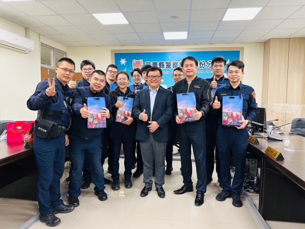 頭份市泰晏公司董事長池士豪先生事業有成,經常扶助偏遠地區弱勢家庭,近來見頭份分局員警們忙著維護轄區治安、交通及為民服務工作,十分辛苦,尤其是春節前更是忙碌,特別於112年1月4日15時帶著美味可口蛋捲禮盒至頭份分局慰勞員警工作辛勞,由分局長張明盛代表接受接受。