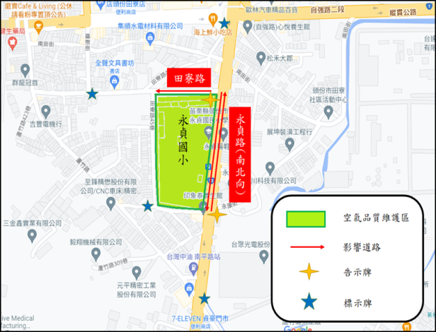 行政院環境保護署近年來參考國外的空品淨區(Clean Zone)之概念,提出區域移動污染源管制之概念,汽機車等移動污染源排放產生細懸浮微粒(PM2.5)帶來嚴重的空氣污染,易造成孩童罹患氣喘、肺炎哮喘、支氣管炎等呼吸道感染疾病,苗栗縣政府環境保護局為全面性管制移動污染源,除大型柴油車外,亦將燃油機車一併納入特定區域管制,並透過車流量及排放量調查選定頭份市永貞國民小學及其主要道路(永貞路及田寮路)為「苗栗縣第二期空氣品質維護區」,並訂定管制規範,期透過空品維護區劃設與管制,提昇民眾生活環境空氣品質。