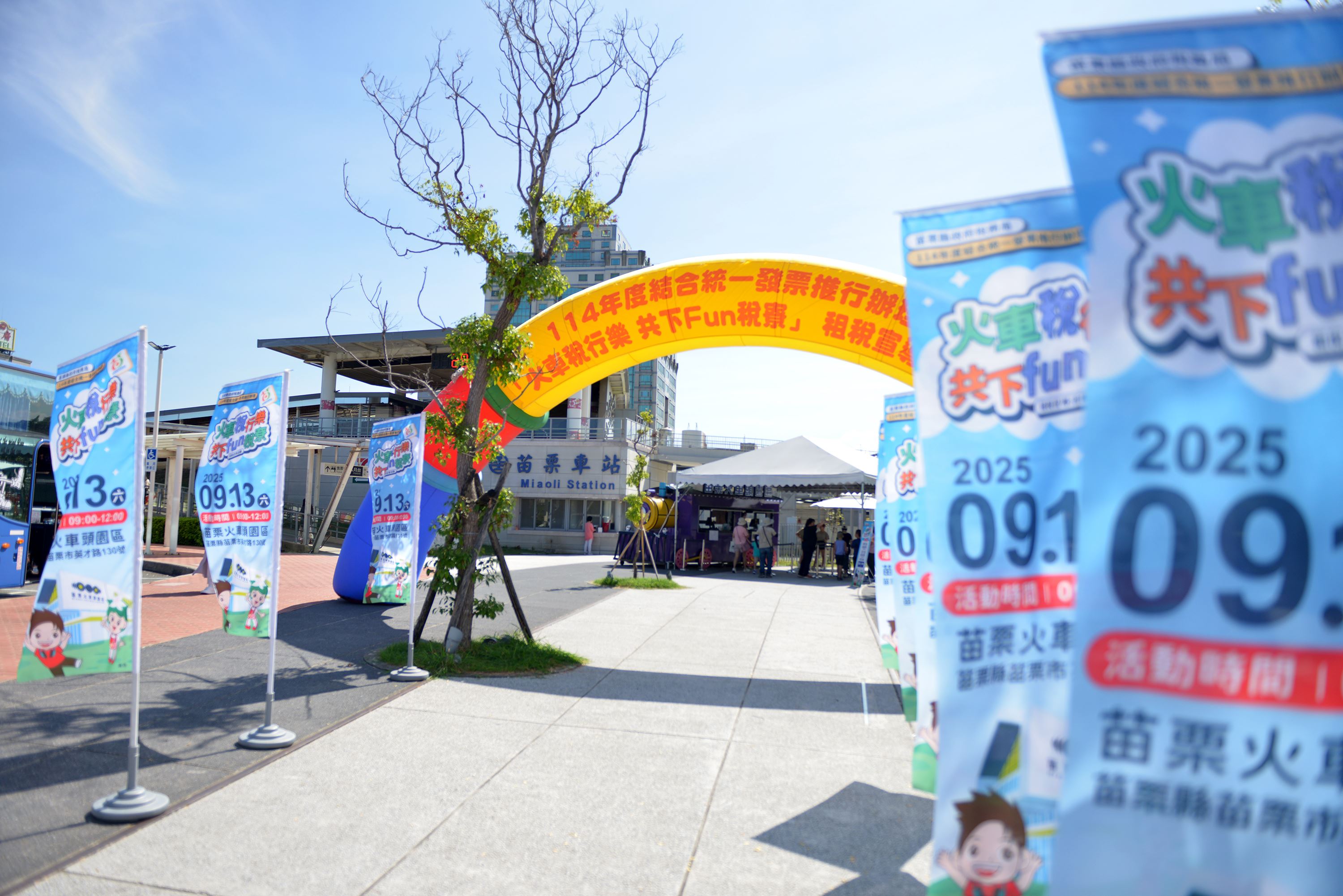 苗栗縣政府稅務局為推廣雲端發票之便利功能及宣導稅務新知,於9月13日在當前最夯的苗栗市火車頭園區舉辦「火車稅行樂、共下Fun稅尞」租稅宣導活動,現場捐贈發票即可兌換入園門票等好康優惠劵,活動內容包含音樂和舞蹈表演、泡泡秀、氣球秀、租稅闖關活動換獎品等,吸引許多大小朋友一起參加,寓「稅」於樂。