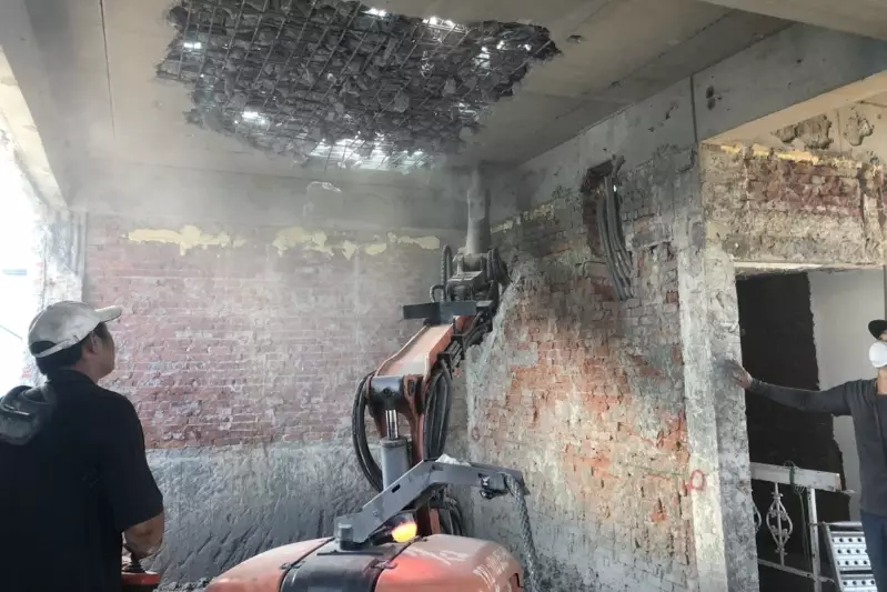 當室內厚牆必須人工破碎時,工期往往動輒數週。遙控機器人出場後,不僅能快速完成破碎,還能同時搭配鏈鋸切割與清運流程,達到一條龍統包處理,有效縮短工期。