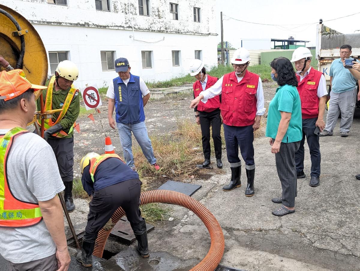 陳市長也勘查北汕二路側溝清疏作業,環保局說明,易積淹水路段自9月20日起即啟動防颱整備機制,針對市區主次要道路及易積淹水區域,加強側溝與洩水孔清疏作業。截至今日,已動員984人次、調派各式車輛124車次,完成清疏長度38.3公里,清除洩水孔堵塞14,182件、溝蓋堵塞8,626件,累計清除廢棄物達109.05公噸。環保局亦持續整備各區清潔隊待命應變,以降低積淹水對交通與民眾日常生活之影響。